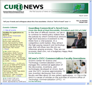 We provide comprehensive communications strategy and implementation for CURE, the Connecticut state bioscience organization. Projects include a monthly electronic newsletter featuring a signed column by the CEO, which we help him plan and write. Other projects for CURE include event planning, brochures, survey research, and an ongoing media relations program that has won placements on the front pages of The New Haven Register and The Hartford Courant. View current issue |